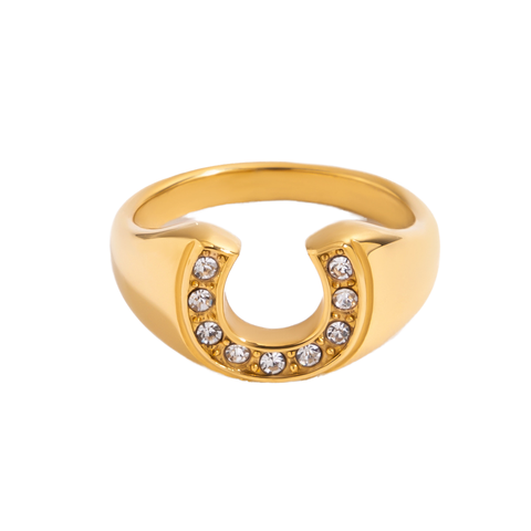 MECYLIFE 세련된 빈티지 골드 패션 반지 여성용 18K 금도금 스테인레스 스틸 방수 지르콘 손가락 반지