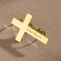 MECYLIFE 개인 맞춤형 금도금 스테인레스 스틸 크로스 너클 레터링 DIY 개인 이름 영어 편지 반지