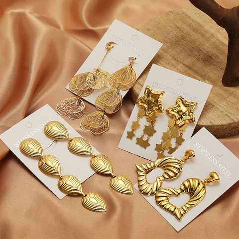 MECYLIFE 개성 올클래드 티타늄 스틸 스터드 귀걸이 우아한 롱 드롭 골드 도금 디자인 트렌디한 스테인리스 스틸 쥬얼리